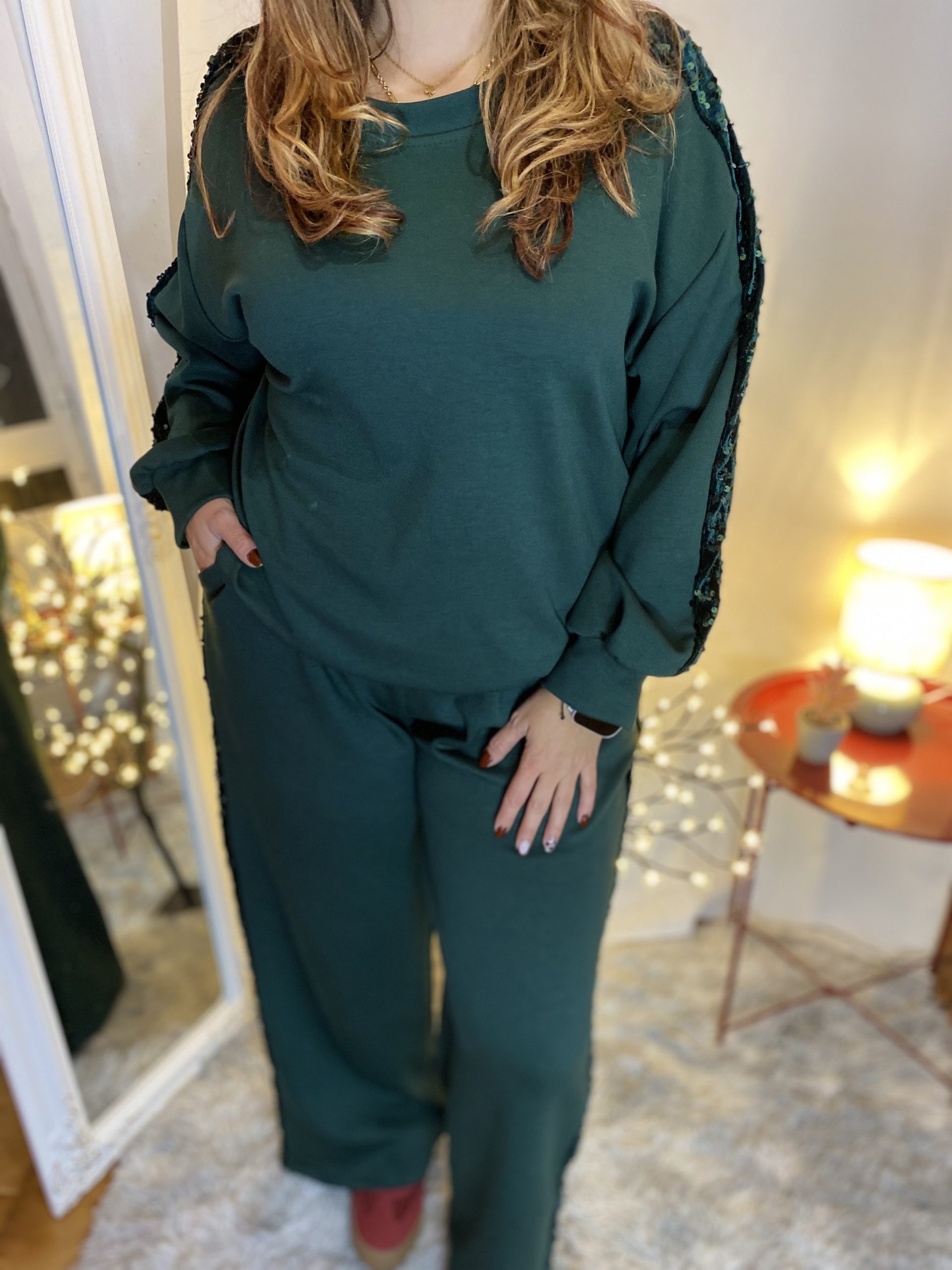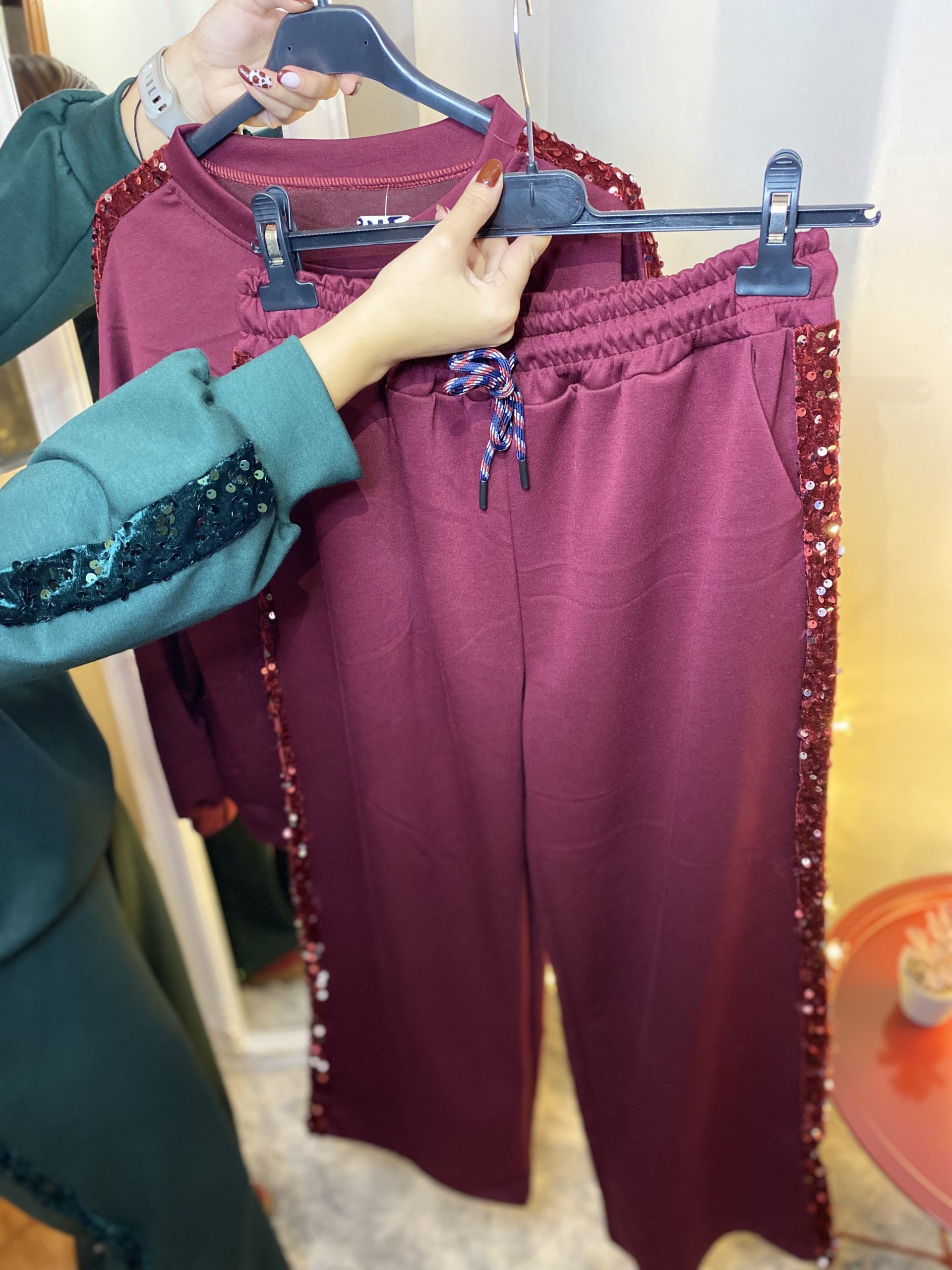 Fato de treino em algodão com lentejoulas.